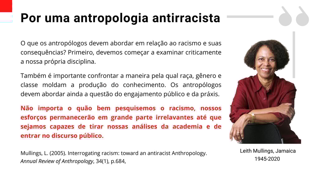 Esta página é dedicada à divulgação de aulas e textos a respeito da vida e da obra de antropólogas negras e negros, cujas contribuições têm sido redescobertas nos últimos anos. A partir de diferentes estilos, métodos e teorias, cada um desses intelectuais desenvolveu perspectivas antirracistas acerca de temas fundamentais às ciências humanas e ao estudo da questão racial no continente africano e nos países da diáspora.